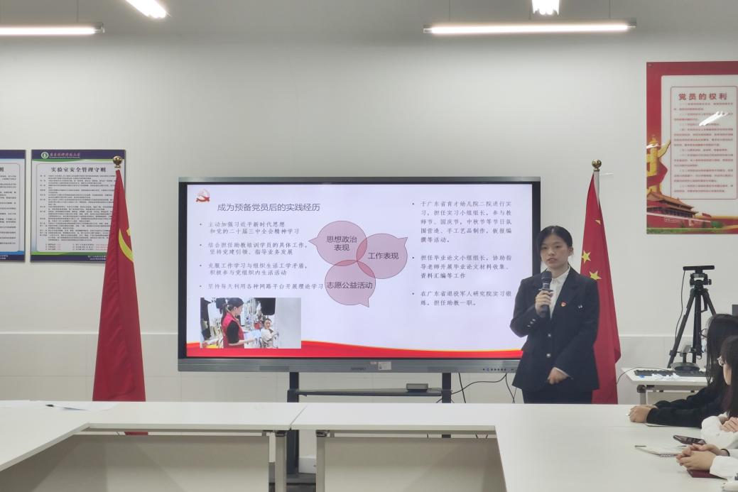 11月29日,学前教育本科生党支部于第二实训楼502会议室召开2024年下半年预备党员转正通表会议,研究讨论李馨雅、王洽、李华珍3名预备党员转为中共正式党员相关事宜。会议由党支部员工副书记张国秀同志主持,全体党员参会,部分入党积极分子旁听会议。