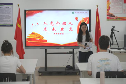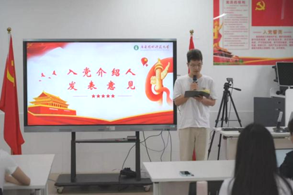汇报完成后,进行会议第四项议程,两位发展对象的入党介绍人张海桐、王壮同志分别介绍了两名同志的有关情况,并发表了个人意见。在发言中,介绍人肯定了她们在培养考察期间的良好表现,均认为她们已具备成为预备党员的条件。