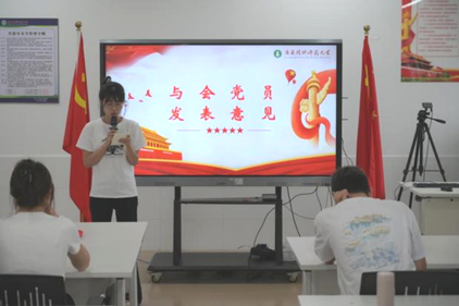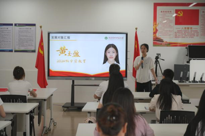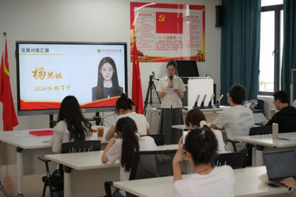 第三项议程由发展对象杨慧银、黄玉盈两名同志依次进行个人情况的汇报。两名同志分别在汇报中阐述了自身思想、学习和工作上的成长与进步,展现了积极向党组织靠拢的决心和行动,表达了对加入中国共产党的强烈愿望。