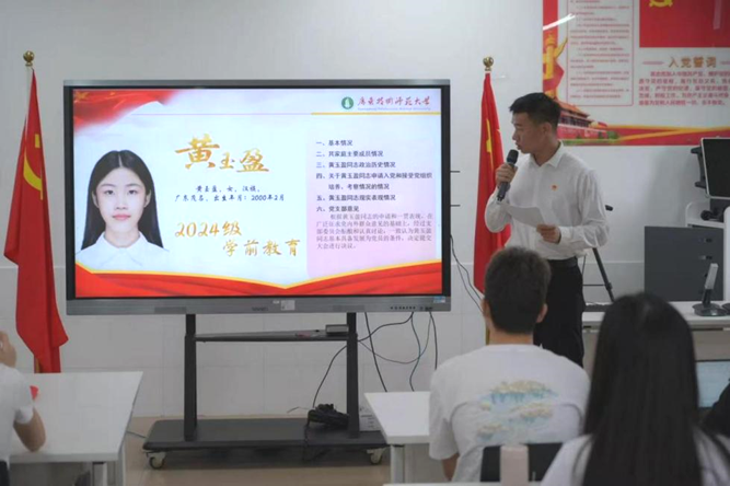 支部书记黄石华老师出席会议并指导,支部全体党员参加,24级研究生积极分子列席,会议由支部副书记龙建平同志主持。本次会议严格按照党组织接收预备党员各项程序进行,共包含十项议程。