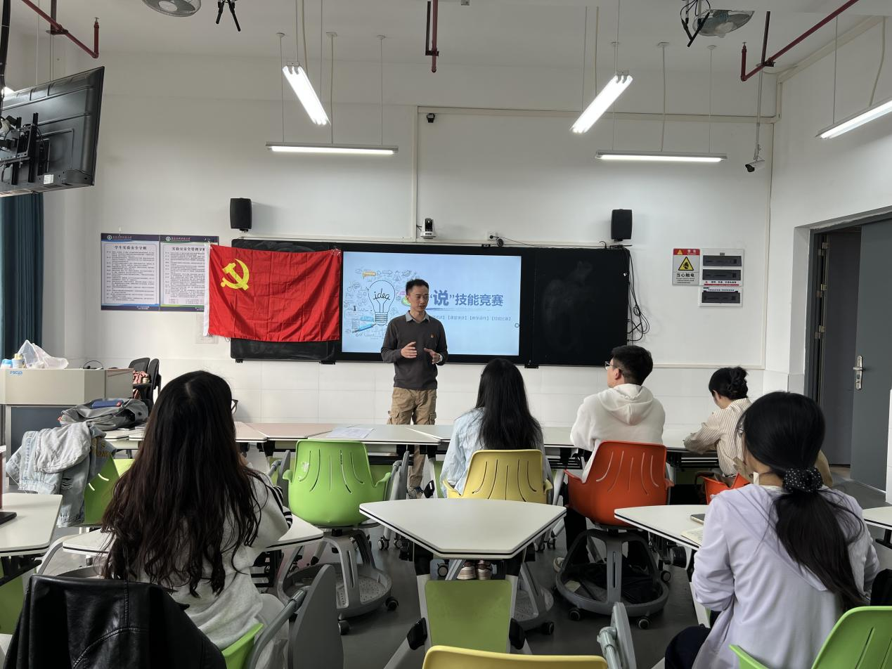 理论学习结束后,“教学技能大赛经验分享”环节为现场注入浓厚实践氛围。龙建平同志与入党发展对象范旭玲同志结合自身参赛经验作了交流发言。龙建平同志以备赛、参赛、亮点细节为框架,分享备赛个人高效准备法,建议选感兴趣且擅长的科目学段,吃透教材、教案与导入法,强化教案、板书等练习。范旭玲同志结合自身参赛的经历,补充比赛流程与实战经验,她详细介绍了“院赛-校赛”的完整流程,提醒大家“校赛更注重临场反应,需提前熟悉不同学段教材框架”等。