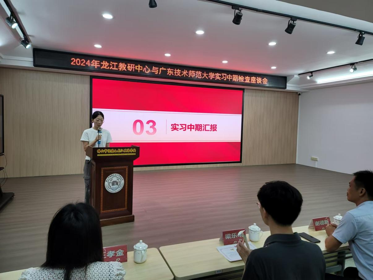 18日下午,走访团队一行达到龙江教研中心下属的龙江里海公司。来自龙江教研中心的领导老师,3所实习公司指导教师代表和我系16名实习生代表参与了本次交流活动。在交流活动中,与会师生首先在龙江教研中心领导老师带领下参观了里海公司的的教学设施和环境。随后,召开了教育实习中期考核座谈会。各实习公司指导老师代表详细介绍了所指导实习生的实习工作情况,详细谈及了一些带教经历。龙江教研中心及实习公司对我系实习生给予高度评价,认为同学们专业基础扎实、工作积极主动,积极参与创客节项目指导,在教学与班级管理方面都能够有条不紊、认真负责。实习生们也纷纷表示,实习期间收获了很多宝贵的经验和知识,感谢顺德龙江镇各实习公司的关心和支持。在检查结束后,公司与教育实践基地进行了导师互聘仪式,谢德新副经理向龙江教研中心下属的实习公司的老师颁发了校外实践导师聘书,龙江教研中心向教育技术学系的四名专任教师颁发校外指导专家聘书。