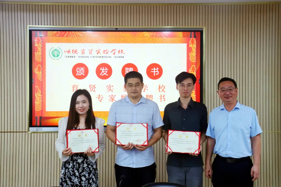 18日上午,走访团队一行首先达到育贤实验公司。该校濮文磊董事长、教学行政、实习导师与实习员工出席了本次活动。会议伊始,与会人员通过“科创苑”的简介视频,对该校科技创新领域的进行了初步的了解,随后,该校科技创新部谭健泰部长围绕育贤科创教育的发展与成效、科创团队风采、环境条件及未来展望四个方面进行信息科技课程教学指导工作汇报。实习生代表林苑仪老师则分享了自己的实习心得和收获。谢德新副经理勉励在座实习老师们珍惜这次难得的实习机会,充分把握和利用育贤实验公司提供的资源,为自己的实习实践和专业发展赋能。在检查结束后,两校进行了导师互聘仪式,谢德新副经理向育贤实验公司颁发了校外实践导师聘书,育贤实验公司向教育技术学系的四名专任教师颁发校外指导专家聘书,这一互聘机制进一步强化了双方在实践教学和学术交流方面的紧密联系与合作。在合作交流环节,双方就未来的合作模式进行了深入探讨,并针对即将到来的师范专业认证专家实地考察进行了详细商讨,以确保考察工作的顺利进行。