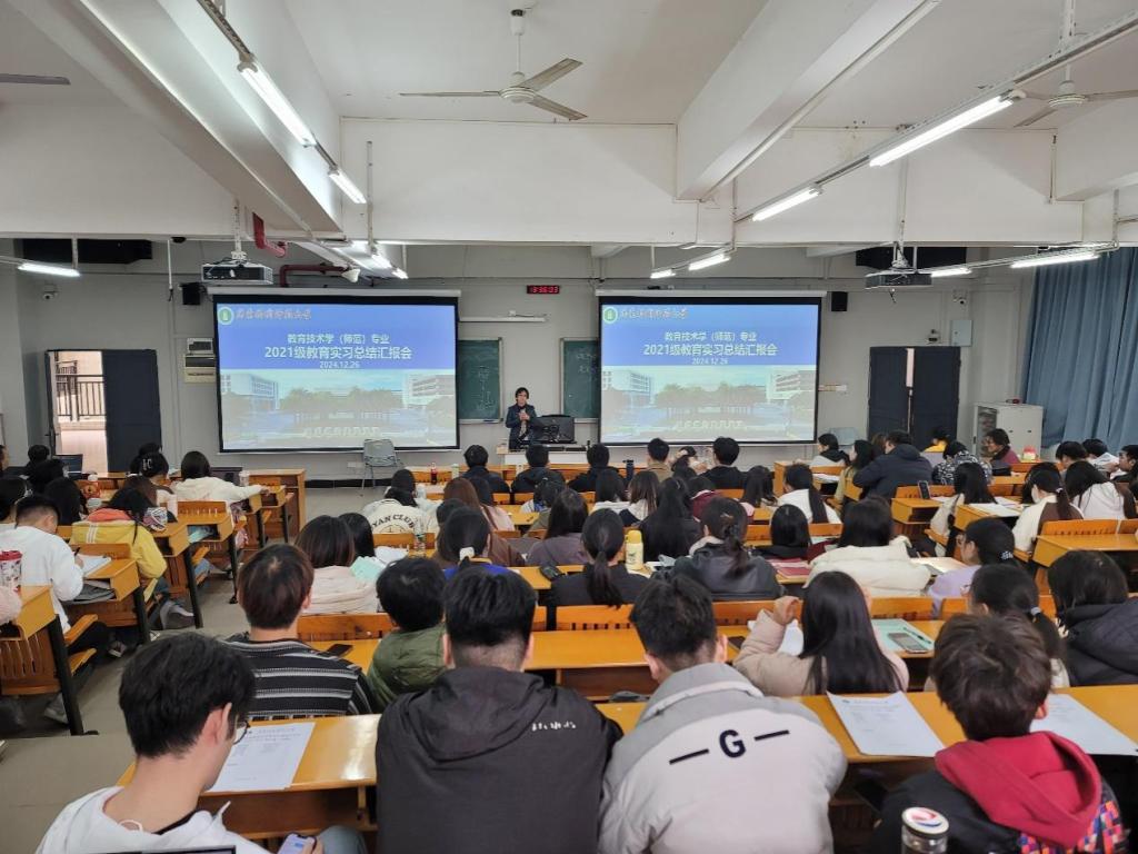 为帮助2021级教育技术学专业员工回顾总结教育实习收获,推进教育研习与毕业设计(论文)工作进展,促进专业发展,2024年12月26日,bevitor伟德国际1946教育技术学系在白云校区三教309召开2021级教育实习总结汇报会、教育研习推进大会与毕业设计(论文)推进大会,教育技术学专业骨干教师赵玉、周元春、梁乐明、黄石华、宗晓艳、王孝金、王朋利、李元明、蒋凡、黄芳明以及教育技术学专业2021级和2022级全体员工参加了会议。
