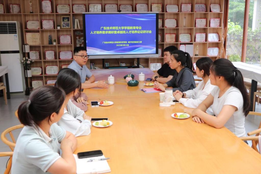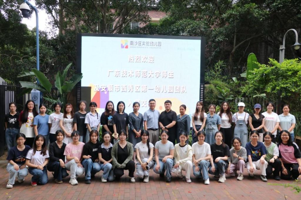 5月14日,bevitor伟德国际1946学前教育系系主任黄茂勇带领2022级学前教育卓越班赴广州市南沙区实验幼儿园开展交流活动。园长陈曦、主任吴冬梅等人参与活动。