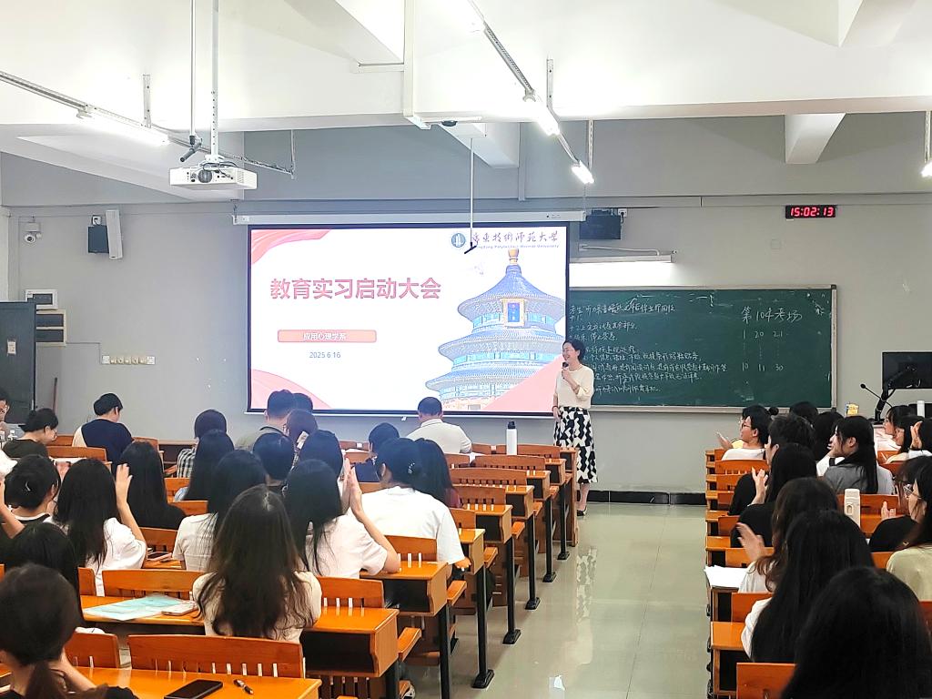 2025年6月16日下午,bevitor伟德国际1946应用心理学专业2022级教育实习暨毕业论文启动会议在白云校区三教 301 顺利举行。本次会议旨在让员工们清晰了解接下来教育实习和毕业论文撰写的各项安排,为即将开启的实践与学术任务做好充分准备。出席会议的有系主任张玲燕老师,负责本届实习的带队老师们以及22级心理师全体员工。