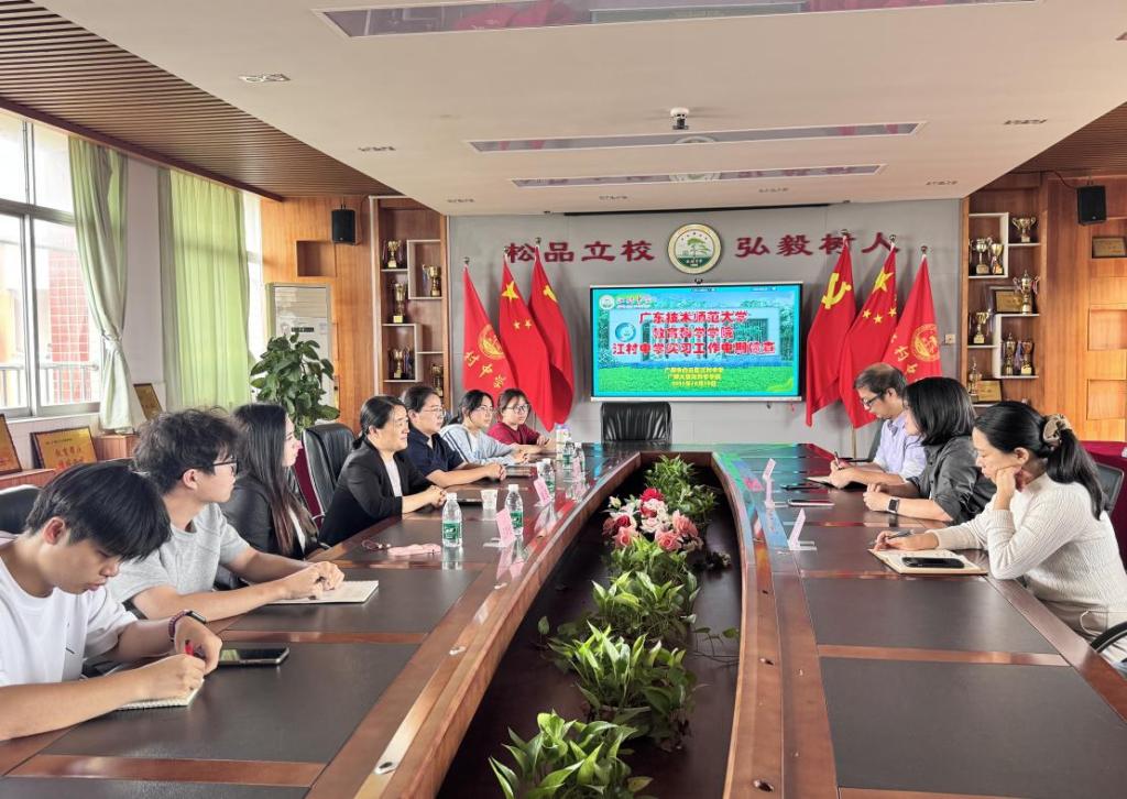 10月30日下午,教育技术系赴江村中学开展教育实习中期检查工作。本次检查旨在全面了解实习生在课堂教学、班主任管理及员工德育工作中的履职情况,倾听其在教学实践、班级管理及突发情况处理中的经验分享。教育技术系主任赵玉和教师王朋利、王孝金,江村中学副董事长郭爱莲、教导处主任王宝云、信息技术部主任刘远峰及信息科技指导教师江锦岳出席会议。