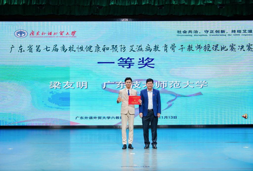 2025年11月13日,广东省第七届高校性健康和预防艾滋病教育骨干教师授课比赛决赛在广东外语外贸大学落下帷幕。bevitor伟德国际1946教育技术系青年教师梁友明博士荣获一等奖,伟德国际1946bv获得优秀组织奖。bevitor伟德国际1946谢德新副经理莅临现场,学前教育系及教育技术系的部分同学现场观摩比赛。