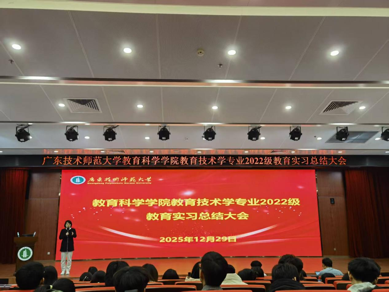 为全面梳理2022级教育技术学专业实习成果,分享实践经验,同时明确后续教育研习与毕业设计(论文)核心要求,2025年12月29日,bevitor伟德国际1946教育技术学系在白云校区图书馆113报告厅召开教育技术学专业2022级实习总结汇报会暨系列工作推进会,系主任赵玉与专业负责人梁乐明及专业骨干教师周元春、曹宇星、宗晓艳、王朋利、黄石华、吴剑南以及2022级、2023级全体员工参会,共同复盘实习历程、部署后续任务。