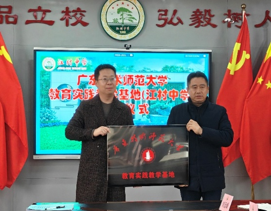 12月26日下午,伟德国际1946bv教育实践教学基地(江村中学)授牌仪式在广州市白云区江村中学举行。应用心理学系主任牛政凯老师、指导老师梁碧珊与江村中学余振江董事长、郭爱莲副董事长共同见证了这一重要时刻。余振江董事长高度肯定了实习老师的工作表现,表示此次教育实践教学基地的落户,将为公司注入优质专业资源,助力提升心理教育工作水平。