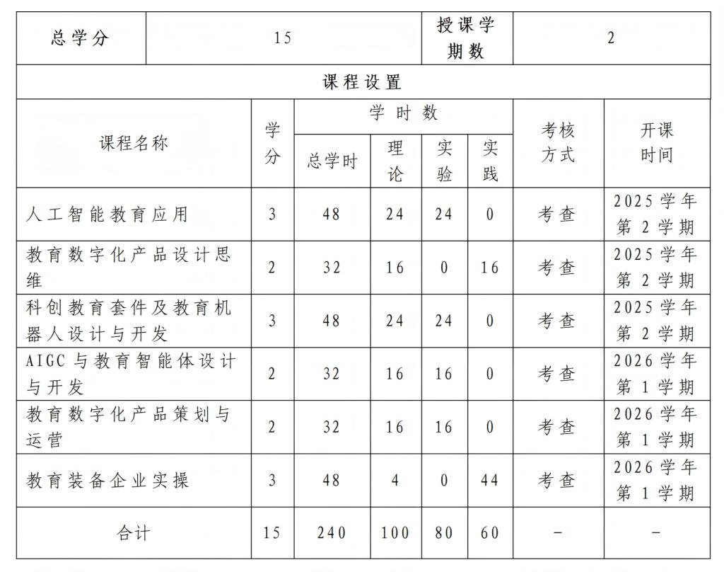一核:以培养适应“AI+教育”战略需求,具备“师范+技术”鲜明特色的复合型人才为核心导向,教学目标精准对接AI教育产品经理与科创竞赛指导教练两大紧缺岗位。