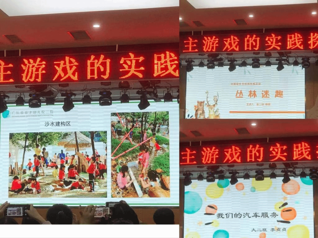 户外自主游戏是广东省育才幼儿院二院的特色课程,在吴园长的陪同和讲解中,老师与同学们观察了二幼的“一小时户外自主游戏”,同时,吴园长针对户外自主游戏做了相关的报告,大班级李贞贞老师与中班级杨玥老师也分别分享了《我们的汽车服务》和《丛林迷趣》两个游戏案例。