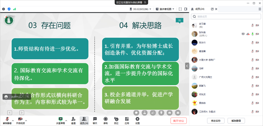 专家论证结束后,熊经理对三位专家的指导与建议表示感谢,并表示一定尽全院之力,在接下来的时间认真打磨。系主任张玲燕副教授对专家们提出的完善意见予以了回顾与盘点,并就修缮工作进一步分工,责任到人,落实到事,以期在提交材料评审前达到最优。