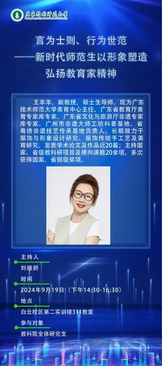 【9.19讲座预告】言为士则、行为世范——新时代师范生以形象塑造弘扬教育家精神