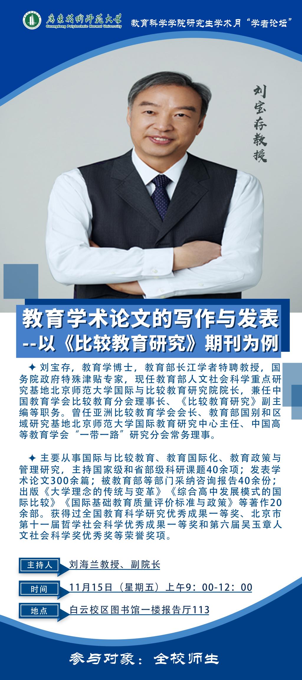 【11.15讲座预告】 教育学术论文的写作与发表--以《比较教育研究》期刊为例