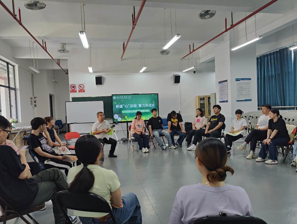 值得一提的是,本次活动特别邀请到任增辉老师参与其中。任增辉老师深入一组,与同学们亲切交流,针对大家在“研途风雨图”中提出的各类困惑,结合自身多年的教学与科研经验,给予了深入浅出的分析与建议。他鼓励同学们保持开放心态,主动寻求资源,建立支持系统,并强调“研究生阶段不仅是学术的成长,更是心智的成熟”。任增辉老师的真诚分享赢得了同学们的阵阵掌声,也为新生们指明了前行的方向。