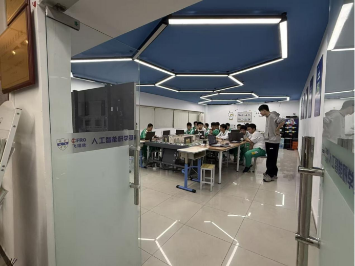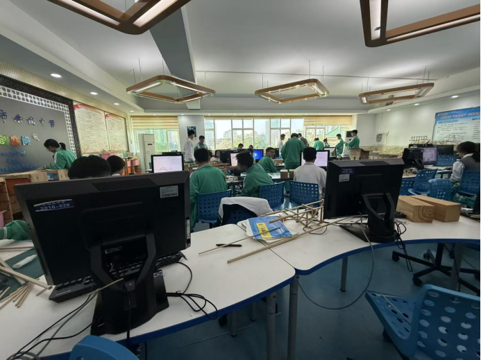 签约仪式结束后,在陈韶光老师和许月媚老师的带领下,赵玉教授和研究生们先后参观了南武中学的人工智能室、创客工作室等特色功能场馆。在人工智能室,工作人员详细介绍了室内配备的智能教学设备、课程体系以及员工在人工智能领域的学习成果,展示了南武中学在科技教育方面的雄厚实力;在创客工作室,各种员工自主设计制作的创客作品琳琅满目,充分展现了员工的创新思维和实践能力。