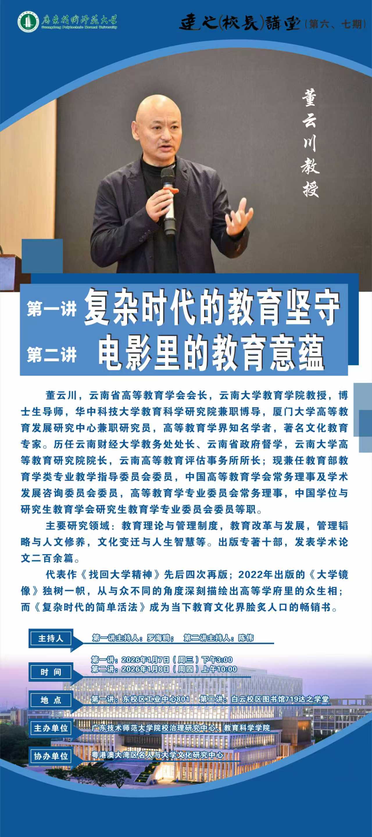 【1.7和1.8讲座预告】第一讲:复杂时代的教育坚守、第二讲:电影里的教育意蕴