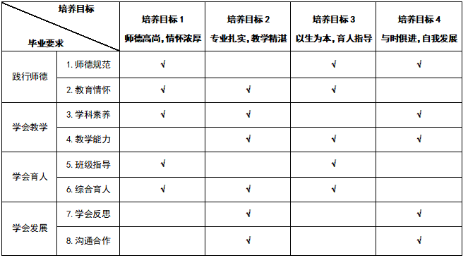 三、毕业要求对培养目标支撑的矩阵图