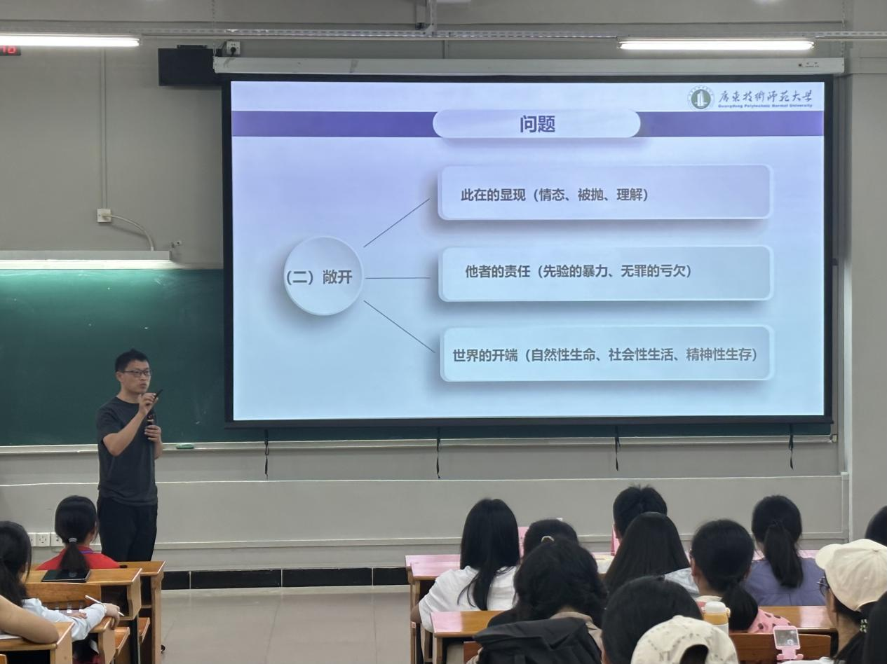 最后22级教育学研究生黄冈同学对本次讲座进行总结。他提道,师德需要培养,需要教育,更需要的是每位教师的自我修养。我们需要把心沉下来,静心教书,潜心育人,共同撑起教育的蓝天。