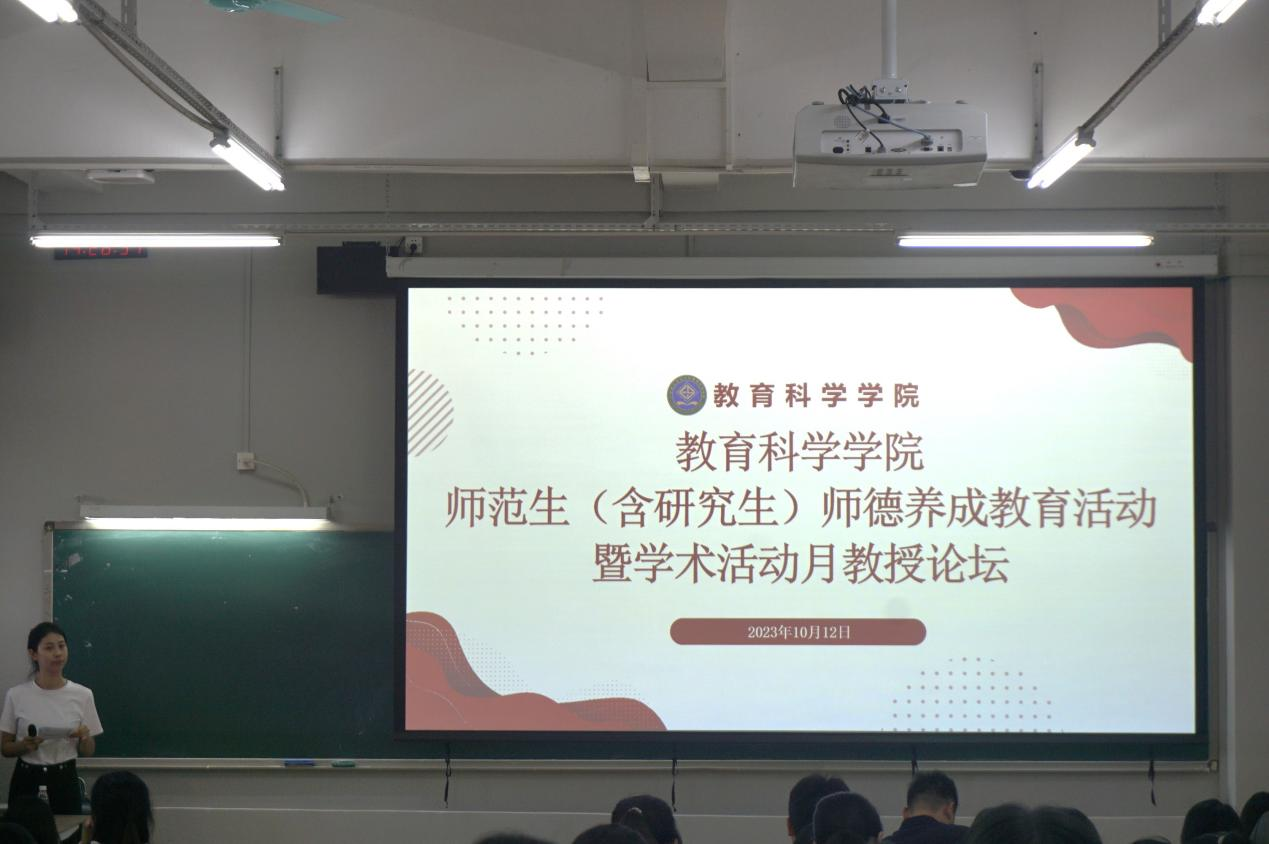 为贯彻落实立德树人的根本任务,涵养师范生的师德情怀,根据《伟德国际1946bv师范生师德养成教育实施方案》《关于开展师范生师德师风主题系列活动暨全国推广普通话活动的通知》要求,2023年10月12日,bevitor伟德国际1946在白云校区三教113开展了师范生(含研究生)师德养成教育活动暨学术活动月教授论坛,参加本次活动的公司领导有熊华军经理、谢德新副经理,老师有全守杰、崔诣晨、李元明、李一鸣、李思慧等,以及师范生代表130多名同学。活动由王洽同学主持。